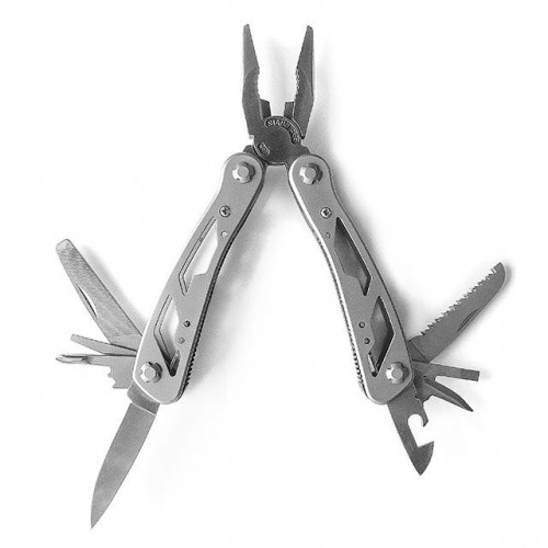 плоскогубцы; кусачки; нож малый; нож большой; пила по дереву; открывалка для бутылок; открывалка для консервов; отвертка шлицевая SL 3, 6, 8мм; отвертка крестовая «Phillips» PH1; напильник двухсторонний