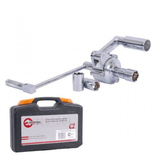 Ключ баллонный роторный для легковых автомобилей 180мм, передаточное отношение 1:16, макc. крут. момент 1000Nm, головки 17, 19, 21мм, пластиковый кейс INTERTOOL XT-0003