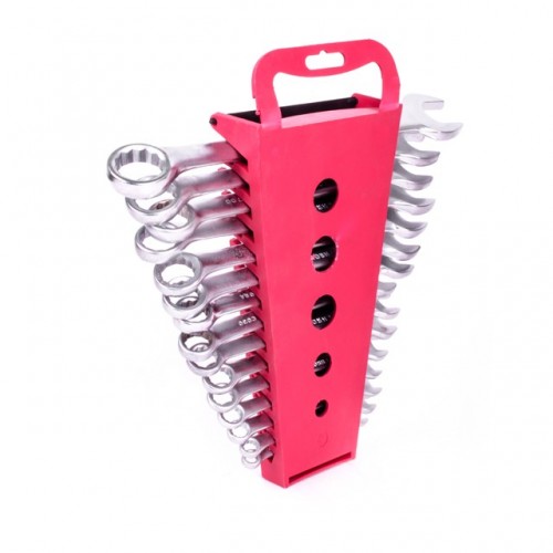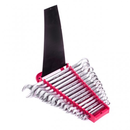 INTERTOOL HT-1204 — это набор из 15 комбинированных ключей, каждый из которых представляет собой сочетание рожкового и накидного гаечного ключа. Размерная линейка набора: 6; 7; 8; 9; 10; 11; 12; 13; 14; 15; 16; 17; 18; 19 и 22 мм. Обе стороны ключей имеют одинаковый размер головки. Рожковая сторона ключей является самой популярной среди соединений и имеет обширную область применения. Накидная сторона ключей, благодаря кольцевому строению, в момент приложения усилия позволяет распределить нагрузку равномерно. Это снижает риск «слизать» грань угла. В целом, они обширно применяются в автослесарном деле. Ключи изготовлены из хром-ванадиевой стали. Её физические и химические свойства обуславливают высокую устойчивость к механическим нагрузкам, коррозионную стойкость и твердость. Кроме того, эта легированная сталь обладает благоприятным модулем упругости. Удобная форма ключа обеспечивает оптимальные условия для приложения усилия. Ключи поставляются в удобном пластиковом держателе с ручкой и отверстием для подвешивания.
