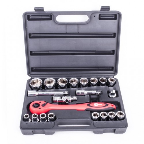 Профессиональный набор инструментов INTERTOOL ET-6021 включает в себя 21 единицу. Инструменты размещены в кейсе из ударостойкого пластика с надежными замками и удобной ручкой. Основное внимание в INTERTOOL ET-6021 уделено торцевым головкам — в данном наборе их 16, диаметром от 10 до 32 мм. Кроме того, профессиональный набор инструмента INTERTOOL ET-6021 включает вороток, ключ с трещоткой с квадратом 1/2" – данная модель отличается исключительной мягкостью и плавностью в работе. Все инструменты изготовлены из хром-ванадиевой стали – материала исключительно высокого качества, а также имеют специальное антикоррозийное покрытие.