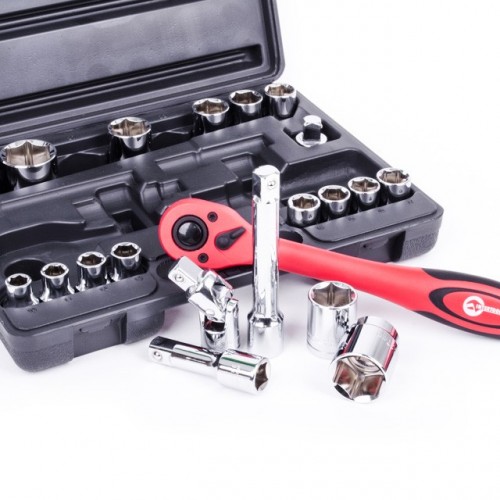 - шестигранные головки: 16 ед.: 10, 11, 12, 13, 14, 15, 16, 17, 18, 19, 21, 22, 24, 27, 30, 32 мм;