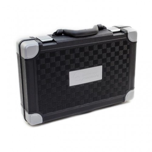 Прочный кейс с замками и уголками из металла;