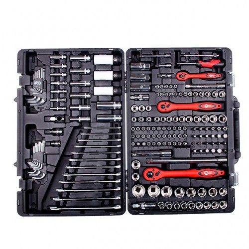 Набор инструментов INTERTOOL ET-7176 — профессиональный набор для самых разнообразных работ, связанных с обслуживанием автомобилей. Набор состоит из 176 единиц с рабочими квадратами 1/2", 1/4" и 3/8". Набор крайне практичен и надежен в эксплуатации. Насадки и инструменты изготовлены из высокопрочной хром-ванадиумной стали, что обеспечивает высокие эксплуатационные характеристики, а также защиту от коррозии. Кроме того, в наборе есть три головки из хром-молибденового сплава. Благодаря строгому соблюдению технологии производства, весь инструмент характеризуются точностью и отсутствием дефектов.