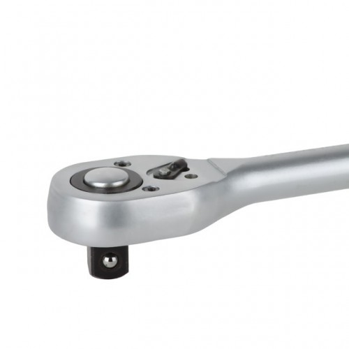 Трещотка, с посадочным квадратом 1/2”, оснащена системой быстрого сброса и фиксации головок. Есть переключатель направления – можно крутить в обе стороны. Облегчит и ускорит работу мастера во множество раз!
