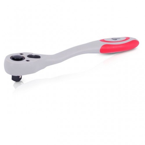 Рукоятка с храповым механизмом изогнутая (трещотка) на 72 зуба. Рукоятка подходит для головок с квадратом в 1/2". Рукоятка предназначена для работы с гайками и болтами. Без особых усилий, прилагаемых на рукоятку вы можете как откручивать, так и закручивать гайки и болты. Эргономичная двухкомпонентная рукоятка, приятна на ощупь. Хромванадиевая сталь рукоятки обеспечивает изделию прочность, износостойкость. долговечность.