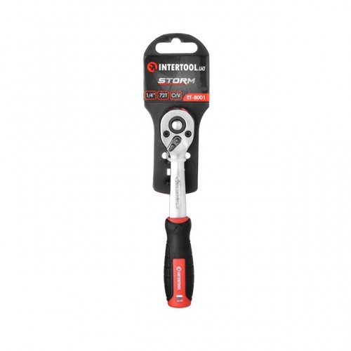 Рукоятка с храповым механизмом на 72 зуба 1/4", Cr-V STORM INTERTOOL ET-8001