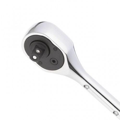Форма ручки трещотки обеспечивает максимальную эффективность от приложенного усилия. Трехкомпонентная рукоятка изготовлена из термопластичной резины (TPR) и гарантирует надежное сцепление даже с грязными или испачканными в масле руками.