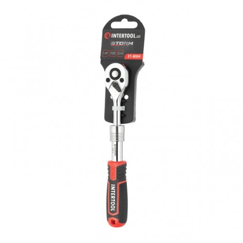 Рукоятка с храповым механизмом телескопическая, 72 зуба 1/4", Cr-V STORM INTERTOOL ET-8004