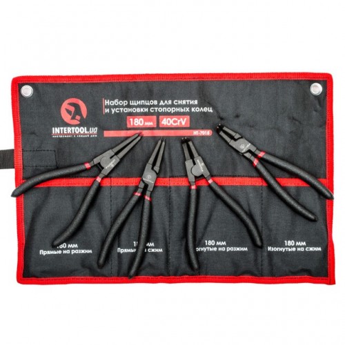 Набор щипцов (4шт) для снятия и установки стопорных колец 180мм, 40CrV, фосфатированные. INTERTOOL HT-7015