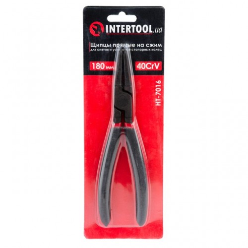 Щипцы для снятия и установки стопорных колец 180мм, прямые на сжим, 40CrV, фосфатированные. INTERTOOL HT-7016