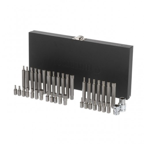 Набор состоит из 40 предметов. Разнообразие бит и шестигранников (TORX, HEX, Spline) в двух размерах 30 и 75 мм позволяют эффективно работать в труднодоступных местах и гарантируют надежное сцепление со шлицом крепежа