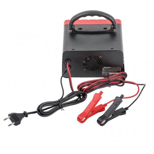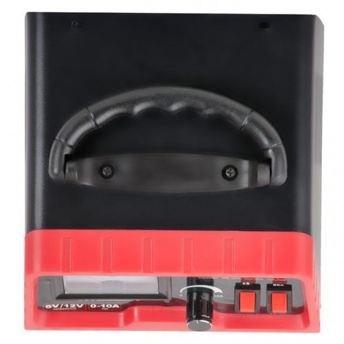 Зарядное устройство имеет полностью изолированные клеммы и амперметр, для удобной регулировки силы тока. На корпусе зарядного устройства есть удобная ручка для транспортировки.