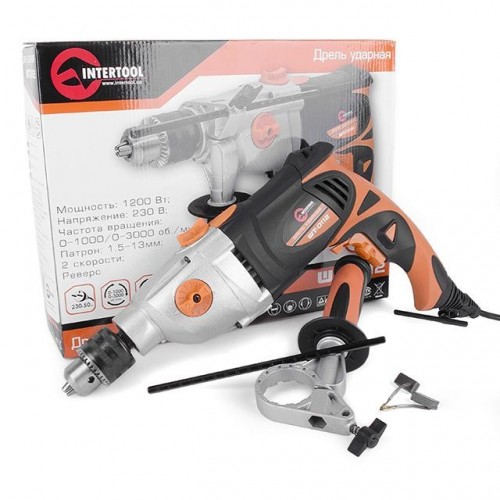 Дрель ударная STORM 1200Вт, 2 скорости, 0-1000/0-3000об/мин, 1.5-13мм, алюминиевый корпус редуктора INTERTOOL WT-0112