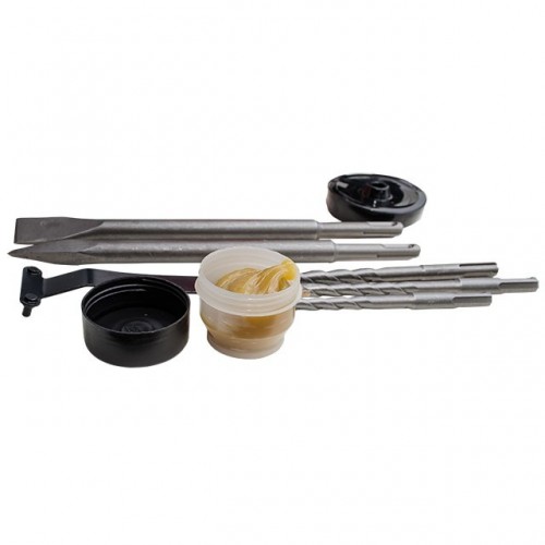 Перфоратор оснащен патроном системы SDS Plus, который не только позволяет быстро менять рабочие насадки, но и является более эффективным в ударных работах, нежели обыкновенный кулачковый патрон. Дополнительный комфорт пользования обеспечивает L-образная компоновка перфоратора. А благодаря большой кнопке запуска, инструментом будет удобно работать даже в перчатках. Особое внимание уделено комплектации инструмента. В комплект поставки помимо самого перфоратора входят три бура, зубило, пика, глубиномер, специальная смазка для хвостовиков расходных материалов и защитный пыльник. Весь набор упакован в удобный кейс из прочного пластика, в котором будет удобно не только хранить инструмент, но и транспортировать его.