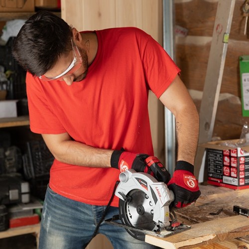 Безопасность при работе с пилой обеспечивается автоматически закрывающимся кожухом, который исключает случайный контакт пальцев с режущим диском. Расположенная на ручке кнопка блокировки выключателя защищает от случайного пуска двигателя. Система плавного пуска позволяет постепенно набирать максимальное вращение и исключает рывки инструмента.