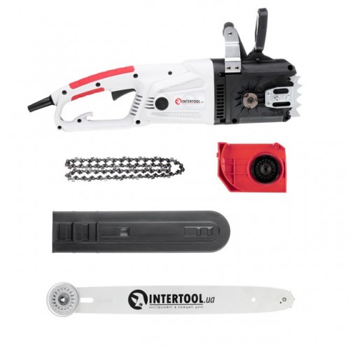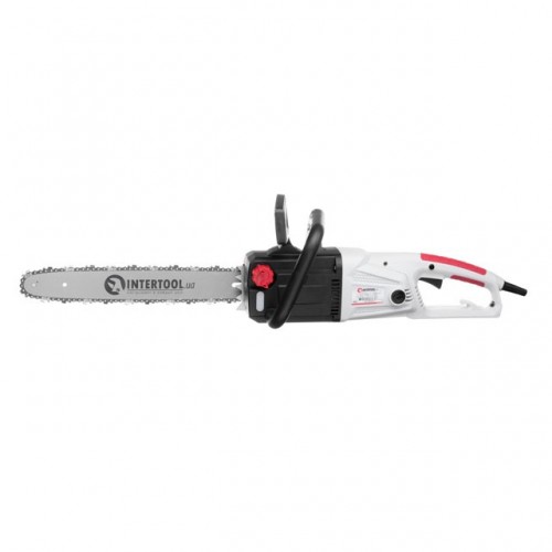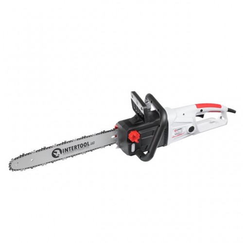 Электропила INTERTOOL с продольным расположением двигателя подойдет для работы в саду, на участке, а также будет полезна на стройке или во время ремонта.