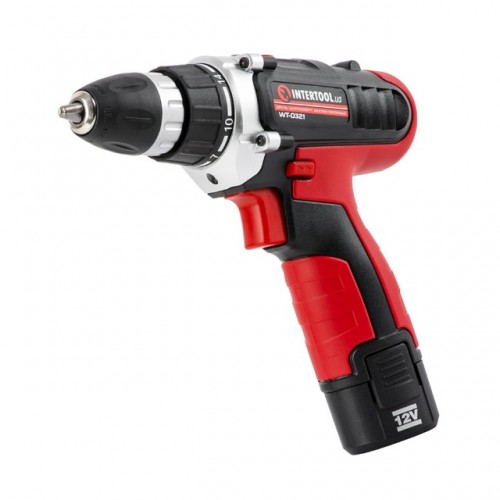 Дрель-шуруповерт аккумуляторная, Li-Ion 12В, 18Nm,1.3 Ач, 2 скорости, 0-400/0-1500об/мин, 2 аккумулятора, 1 час. зарядка INTERTOOL WT-0321