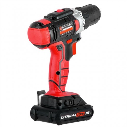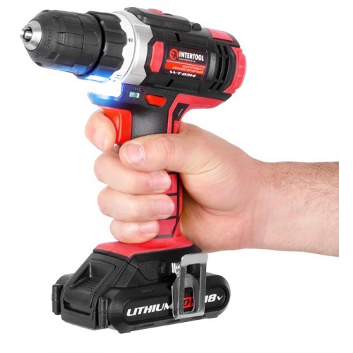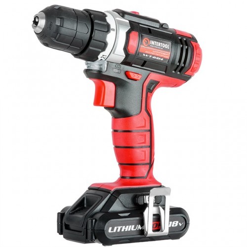 Дрель-шуруповерт аккумуляторная Li-Ion 18 В, 25 Nm, 0-400/0-1500 об/мин, 2x1.3 Ач, быстрая зарядка 1 ч INTERTOOL WT-0314