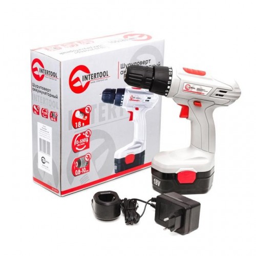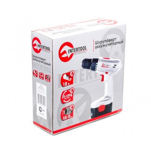 Дрель-шуруповерт аккумуляторная NiCd 18В, 1 аккумулятор, 1.2Ач, 0-10мм, 16Нм INTERTOOL DT-0312