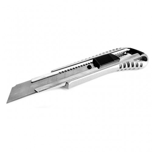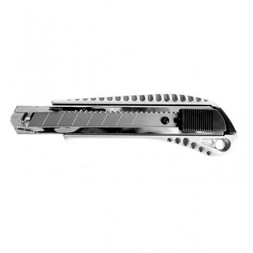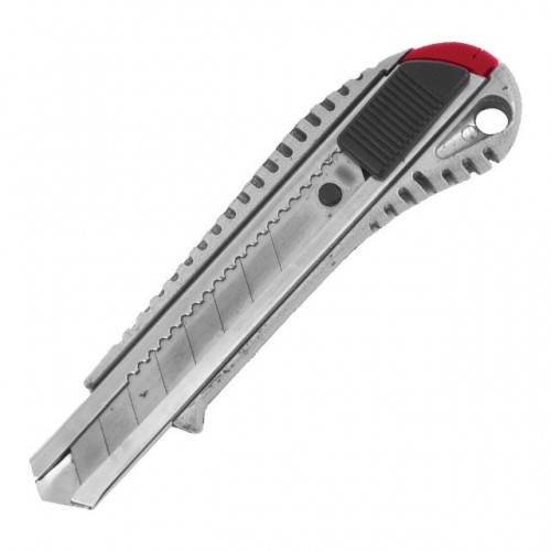 Нож прорезной HT-0504 INTERTOOL с отломным лезвием. Корпус ножа – пластиковый с рифленым противоскользящим корпусом, усилен металлической направляющей для сменного, сегментированного лезвия шириной 18 мм. Используется при строительных и отделочных работах для резки бумаги, картона, бандажных лент, линолеума и прочих материалов.