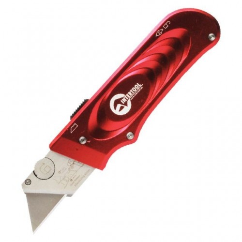 Нож с выдвижным трапециевидным лезвием, металлический корпус INTERTOOL HT-0515