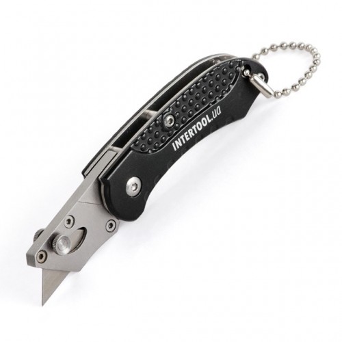 Нож строительный складной мини с трапециевидным лезвием 9мм, SK5, алюминиевая рукоятка INTERTOOL HT-0532