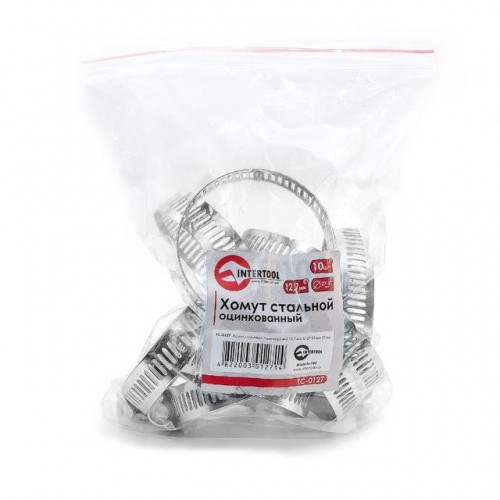 Хомут стальной оцинкованный 12,7 мм D 27-51 мм (упаковка 10 шт) INTERTOOL TC-0127