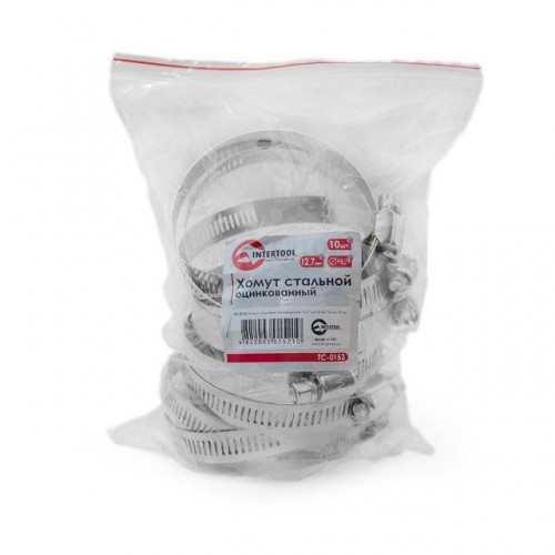 Хомут стальной оцинкованный 12,7 мм D 52-76 мм (упаковка 10 шт) INTERTOOL TC-0152
