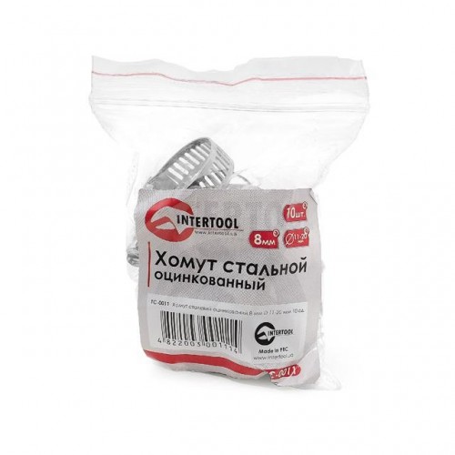 Хомут стальной оцинкованный 8 мм D 11-20 мм (упаковка 10 шт) INTERTOOL TC-0011