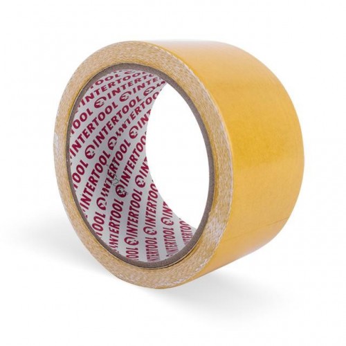 Двухсторонний скотч INTERTOOL KT-0962 имеет длину 10 м и состоит из тканевой основы, на которую с двух сторон нанесен клейкий слой из синтетического каучука.