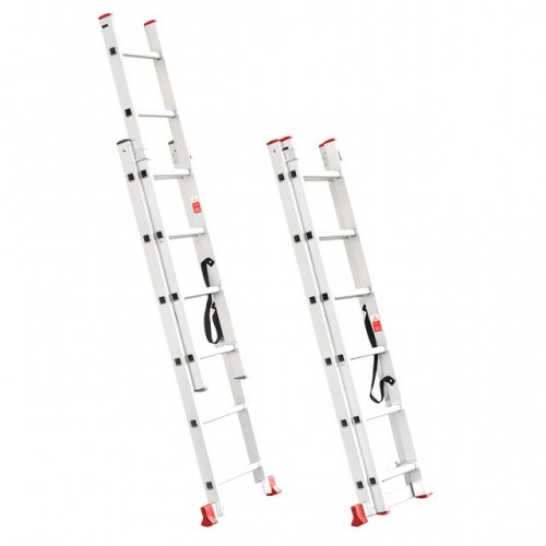 Лестница алюминиевая LT-0206 TM INTERTOOL изготовлена из высококачественного экструдированного алюминиевого профиля, поэтому она достаточно легкая – 5,9 кг и максимально надежная – выдерживает нагрузки до 150 кг. Каждая из двух секций оснащена 6 ступенями шириной 280 мм. Высота лестницы в разложенном виде – 2570 мм, в сложенном – 1726 мм. Оснащена противоскользящими двухкомпонентными опорными заглушками, что обеспечивает надежное сцепление с опорной поверхностью и препятствует нежелательному скольжению лестницы. Рифленые ступени предотвращают скольжение обуви. Конструкция позволяет использовать её и как стремянку и как приставную лестницу. Соответствует европейскому стандарту EN131.