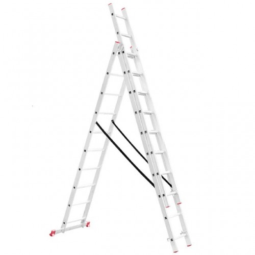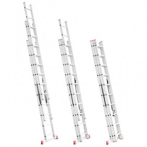 Универсальная алюминиевая 3-х секционная раскладная лестница LT-0310 ТМ INTERTOOL незаменима как в строительстве так и в быту. Лестница LT-0310 изготовлена из высококачественного экструдированного алюминиевого профиля, соответствует европейскому стандарту EN131. При весе 15,4 кг выдерживает нагрузку до 150 кг. Каждая из 3-х секций оснащена 10 рифлеными ступенями шириной 280 мм. Высота в разложенном виде 6766 мм, в сложенном 2846 мм. Противоскользящие опорные заглушки обеспечивают надежное сцепление с опорной поверхностью, препятствуют скольжению. Может применяться как приставная, выдвижная лестница и свободностоящая стремянка. Атмосферостойкие ленты предотвращают самопроизвольное раздвижение боковин.