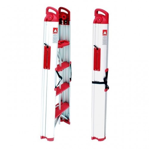 Раскладная лестница-стремянка трансформер TM INTERTOOL LT-5000 изготовлена из высококачественного алюминиевого профиля и соответствует европейскому стандарту EN131. Оснащена уникальной системой складывания, компактна и удобна при транспортировке, а также в хранении (в сложенном виде размеры лестницы 1470*520 мм). Для переноски предусмотрена удобная ручка. Высота стремянки – 1360 мм. Она способна выдерживать нагрузку до 150 кг. Имеет 4 рифленые ступени, полочки под мелкие детали и инструмент. Заглушки у основания обеспечивают надежное сцепление с опорной поверхностью и препятствуют нежелательному скольжению лестницы и царапанию опорной поверхности. Купить лестницу стремянку необходимо, потому что без нее не обойтись в быту, на даче, на складе, при ремонте или строительстве. Лестница стремянка удобна, безопасна и долговечна.