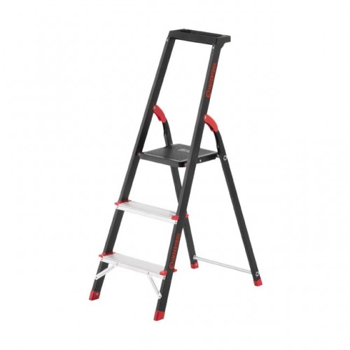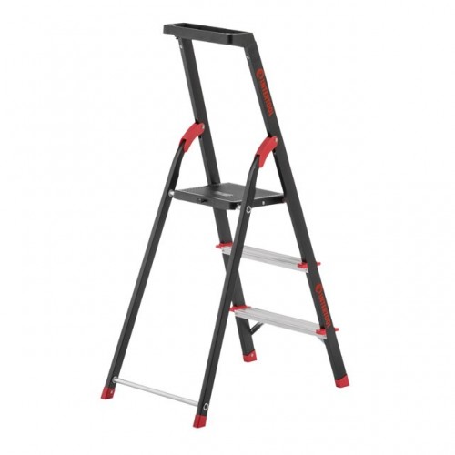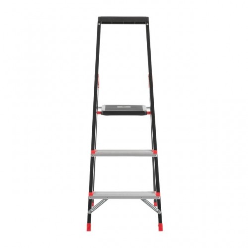 Стремянка изготовлена из прочного стального профиля с алюминиевыми ступенями. Рифленые ступени не позволят скользить ноге и обеспечивают безопасный подъем, а также удобное положение во время работы. Стремянка соответствуют европейскому стандарту EN131 и выдерживает нагрузку до 150 кг.