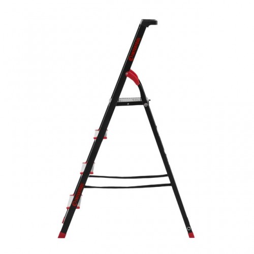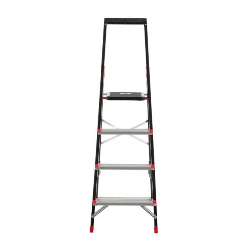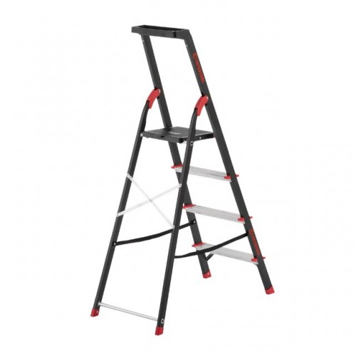 Стремянка изготовлена из прочного стального профиля с алюминиевыми ступенями. Рифленые ступени не позволят скользить ноге и обеспечивают безопасный подъем, а также удобное положение во время работы. Стремянка соответствуют европейскому стандарту EN131 и выдерживает нагрузку до 150 кг.