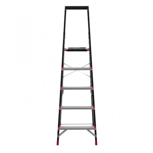 Стремянка изготовлена из прочного стального профиля с алюминиевыми ступенями. Рифленые ступени не позволят скользить ноге и обеспечивают безопасный подъем, а также удобное положение во время работы. Стремянка соответствуют европейскому стандарту EN131 и выдерживает нагрузку до 150 кг.