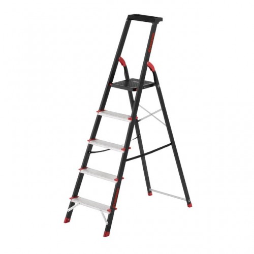 Стремянка 5 ступеней, лоток для инвентаря, стальной профиль, высота верхней ступени 1064мм, 457х893х1568мм, 150кг INTERTOOL LT-0055
