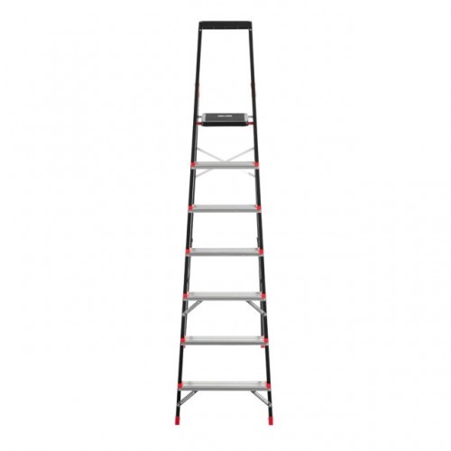 Стремянка 7 ступеней, лоток для инвентаря, стальной профиль, высота верхней ступени 1500 мм, 504*1283*2003мм, 150кг INTERTOOL LT-0057