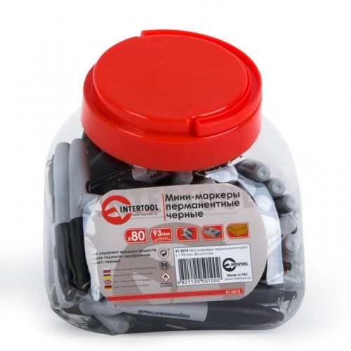 Мини-маркеры перманентные черные, L= 93мм, 80 шт/упак. INTERTOOL KT-5010