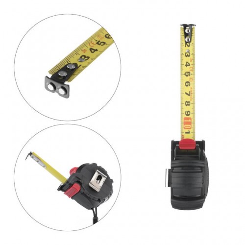 Делать замеры такой рулеткой удобно и легко, поскольку кнопки фиксации полотна находятся в близком доступе для пальцев, размещенные сверху и снизу на корпусе. Зацеп на ленте с магнитом, обеспечивает надежное сцепление с металлом во время измерений.