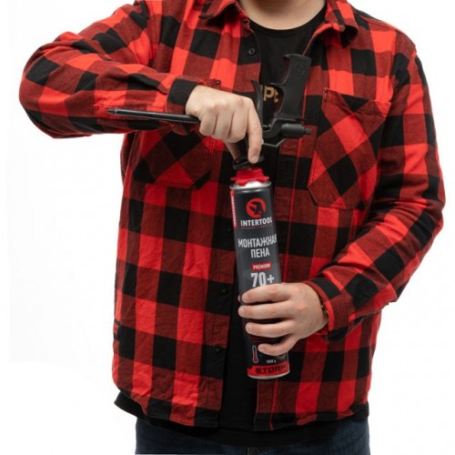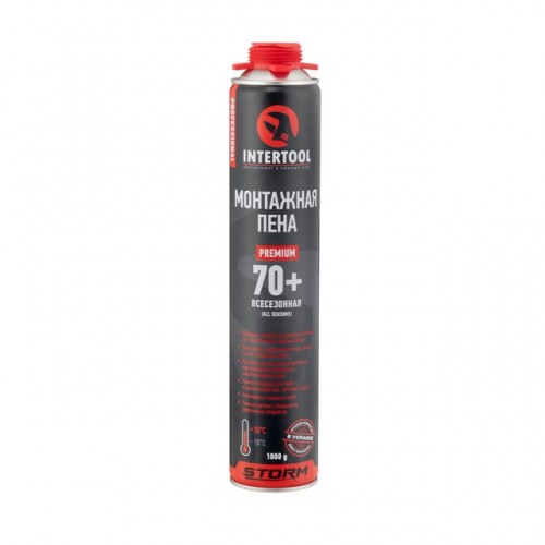Пена монтажная профессиональная, всесезонная, 750мл/1000г. 70л.+., под пистолет INTERTOOL FS-1000