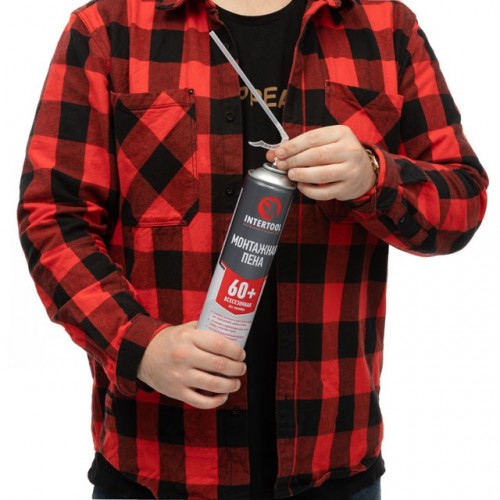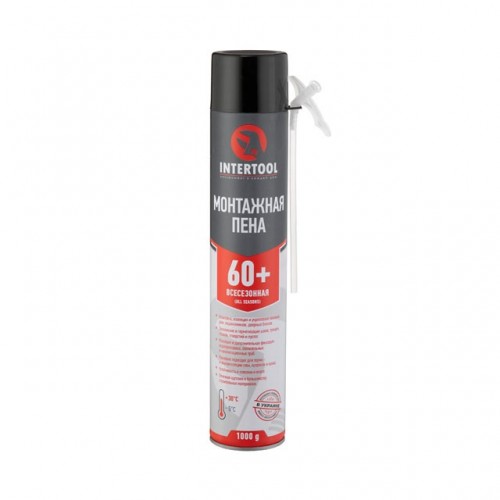 Пена монтажная, всесезонная, 750мл/1000г. 60л.+, трубочка INTERTOOL FS-1100
