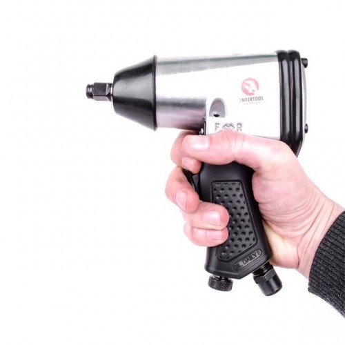 Гайковерт INTERTOOL РТ-1101 — пневматический инструмент профессионального типа, который широко используется в автомастерских, на производстве и при выполнении монтажных работ с применением крепежных элементов с различным профилем. Идеально подходит для шиномонтажа, а также ремонта грузовых автомобилей и техники. Данный гайковерт имеет ударный механизм и функцию реверса. Комплектуется набором головок размерами: 9, 10, 11, 13, 14, 17, 19, 22, 24, 27 мм. Также в комплект поставки входят шестигранный ключ, лубрикатор и удлинитель. Все это укомплектовано в удобный кейс. Скорость вращения составляет 7000 об/мин, а максимальное усилие — 345 Нм. Рабочее давление может достигать 6 атмосфер. Рукоятка прибора прорезинена, — с ним удобно и безопасно работать.