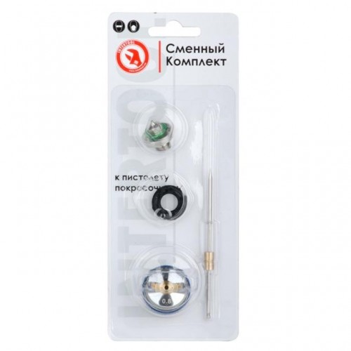 Сменный комплект форсунок используется для замены вышедших из стоя форсунок краскопультов. Также в зависимости от вязкости покрасочного материала Вы можете выбрать различную по диаметру форсунку 0,8 или 1,0 мм.