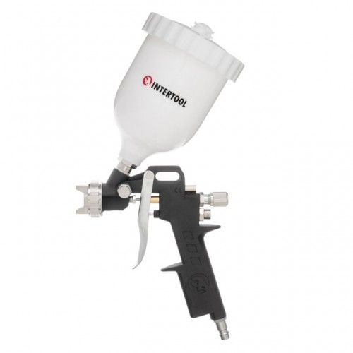 Краскопульт пневматический HP, форсунка 1.5мм, верхний пластиковый бачок 600мл, 3 регулировки, 5bar INTERTOOL PT-0210