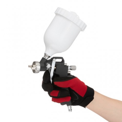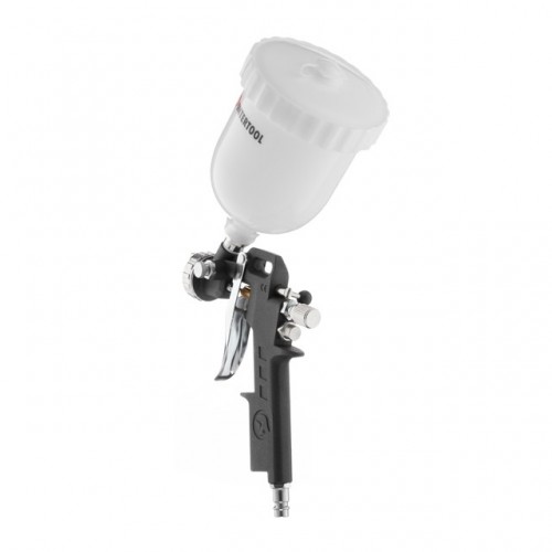 Бачок краскопульта сделан из пластика, это обеспечивает прочность и долговечность эксплуатации инструмента,