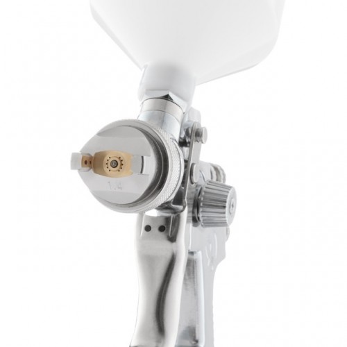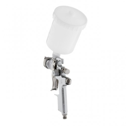 Краскопульт INTERTOOL PT-0103 применяется для профессиональных работ, в том числе и тонировки, аэрографии, художественного лакирования. Данный краскораспылитель создан с применением технологии HVLP, что обеспечивает 75% эффективность переноса ЛКМ на окрашиваемую поверхность. Объем пластикового бачка пистолета составляет 600 мл. Диаметр форсунки — 1,4 мм, а рабочее давление — 3 атм. При этом, расход воздуха составляет от 230 до 300 л/мин.