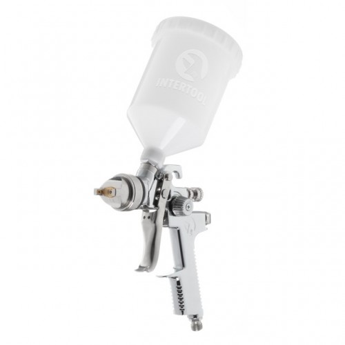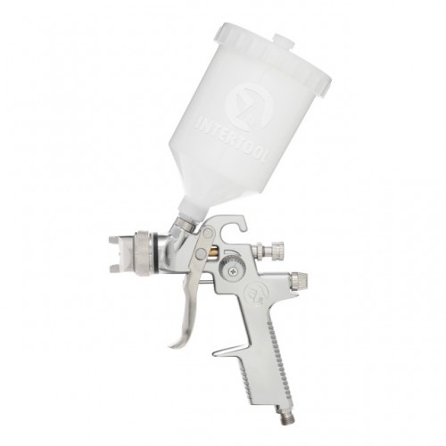 Краскопульт пневматический HVLP, форсунка 1.4мм, верхний пластиковый бачок 600мл., 3бар INTERTOOL PT-0103