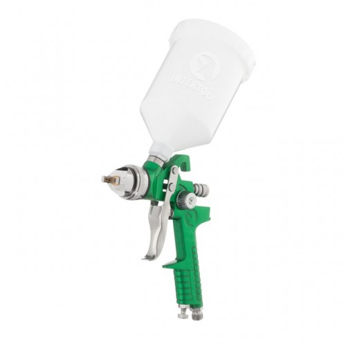 Краскопульт пневматический HVLP, форсунка 2.5мм, верхний пластиковый бачок 600мл, 3бар INTERTOOL PT-0125