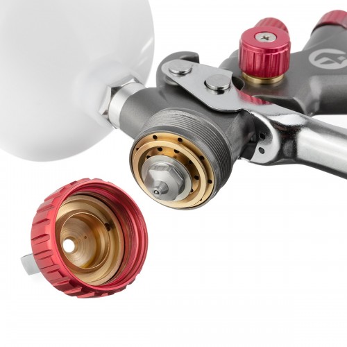 Наряду с взаимозаменяемыми форсунками, которые годами завоевывали популярность среди потребителей, пистолет приобрел новый корпус, улучшенное распределение воздуха и ЛКМ. Главными отличительными особенностями пистолета являются: сверхпрочное тефлоновое покрытие корпуса, улучшенная эргономика рукоятки, более точное распределение веса краскопульта, модернизированные регулировки факела, подачи воздуха и краски.